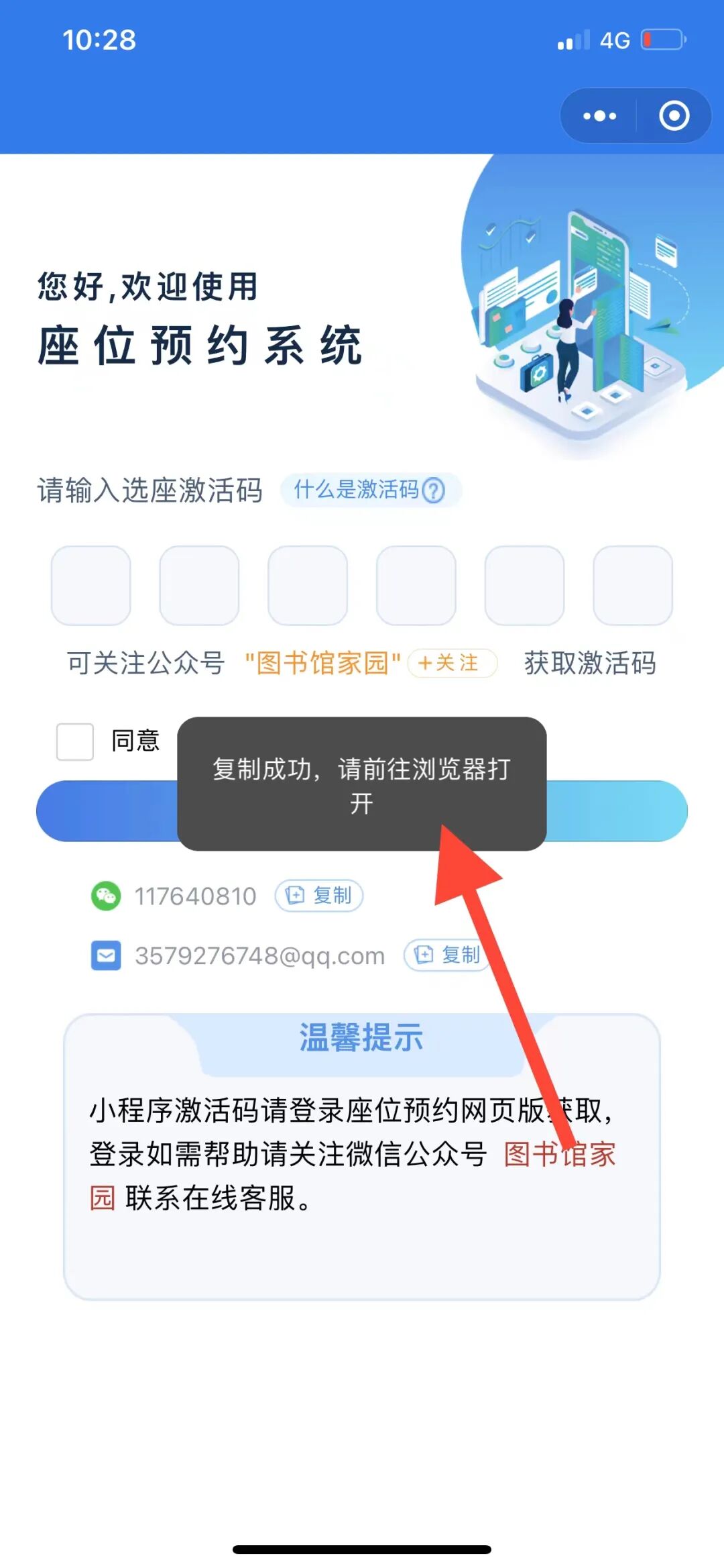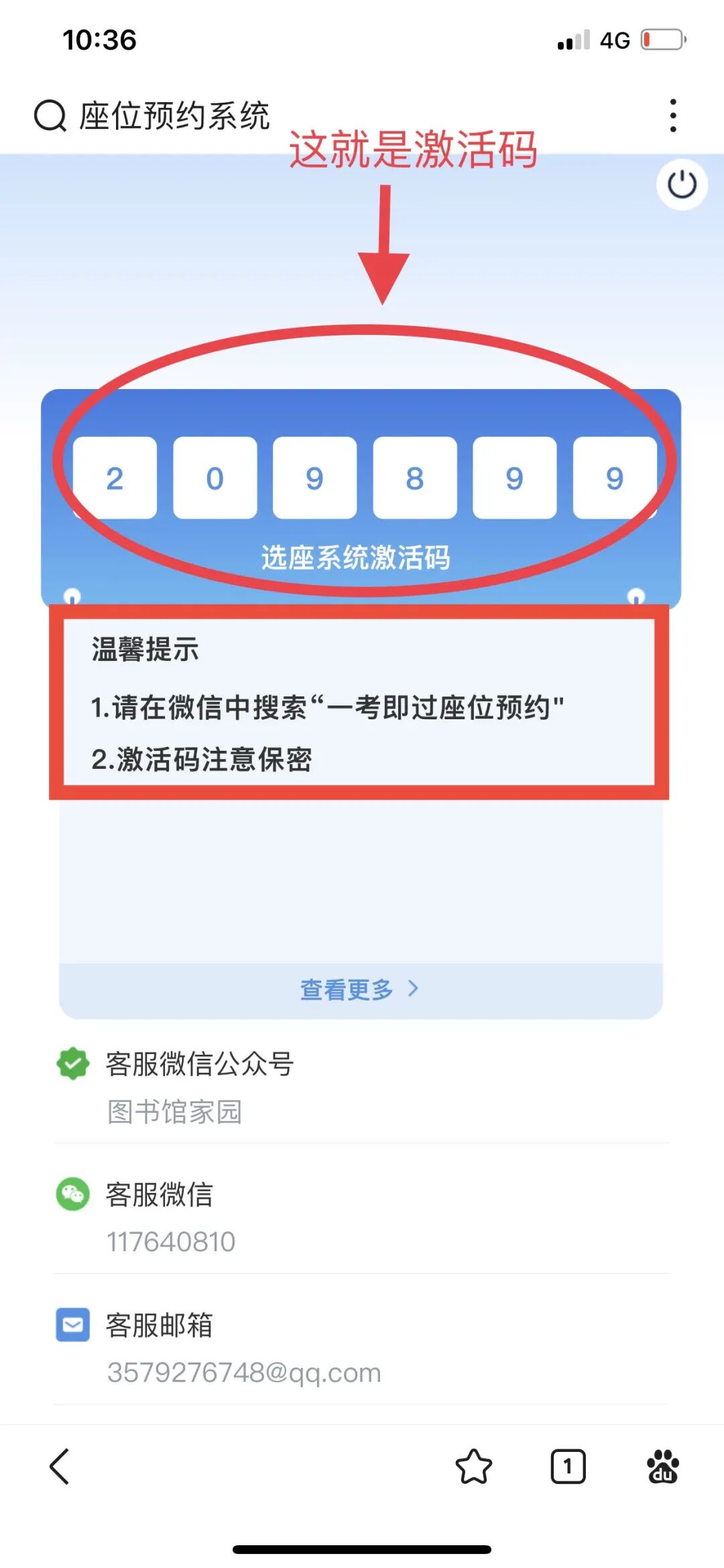 方法二:直接登录图书馆主页 → 点击“预约座位” → 输入学号、密码(同统一身份认证密码) → 登录后页面右侧竖条栏点击“激活码”即可出现激活码。