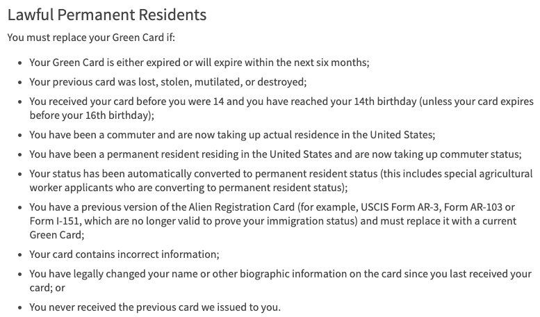 绿卡持有人最常见的需要更换绿卡的情况包括: