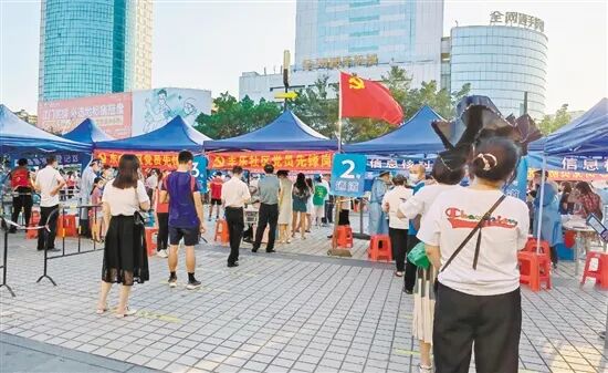 “张嘴、仰头,啊”,身穿严密防护服的“大白”高效为市民采样,此时的他们早已汗如雨下;“党员显担当,就是现在”,高温下、深夜里,处处可见党员的身影;“排队请保持一米间隔”,志愿者的声音此起彼伏,维持着现场秩序和公共卫生……面对来势汹汹的疫情,大家共同拉起了“警戒线”。