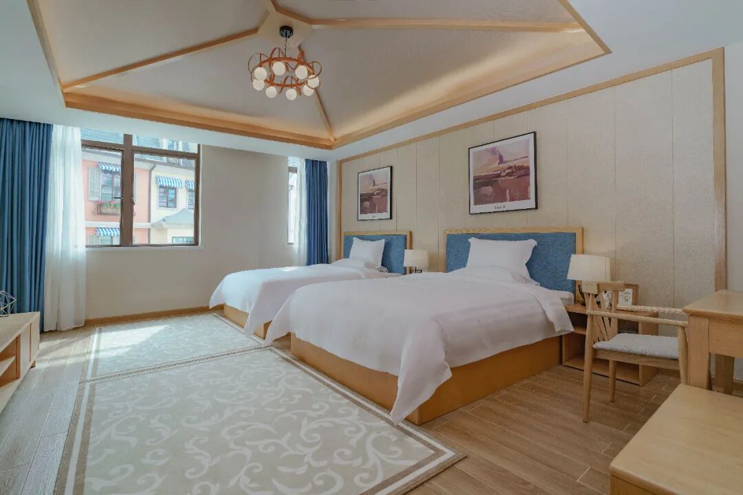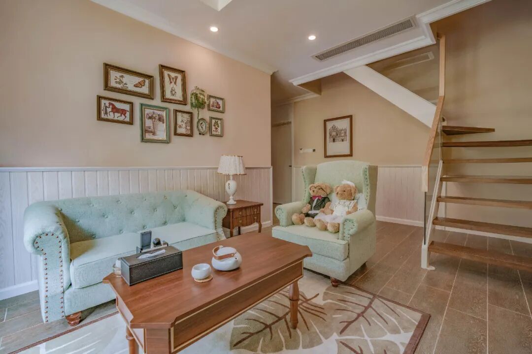 公寓设有113套浪漫温馨的房间,主题各式各样,有原木风格、地中海风格、美式乡村风格等,且设有平层和复式房。清新的异国情调,让人仿佛置身于质朴而浪漫的世外桃源。