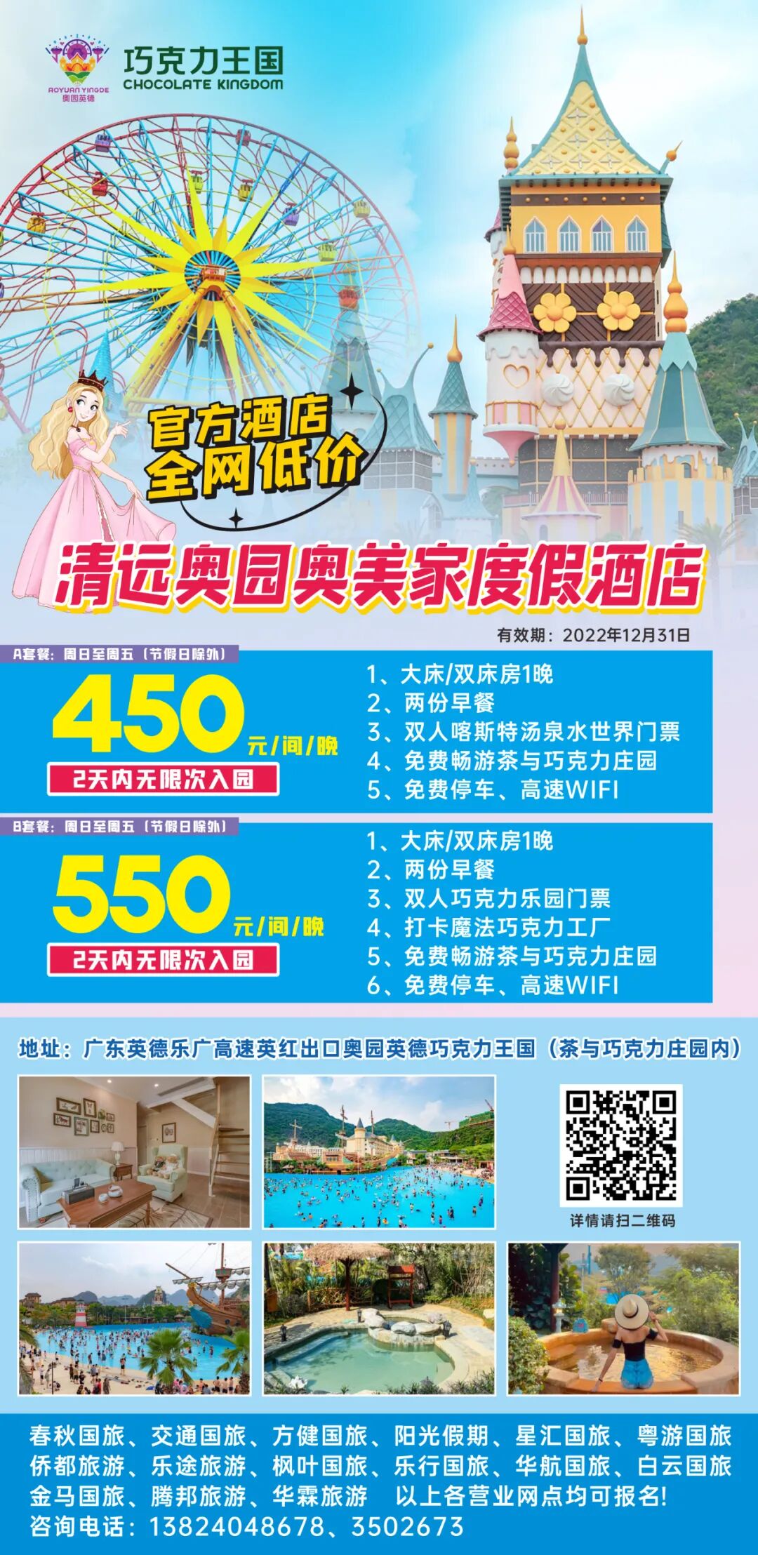 奥园英德巧克力王国、茶趣园两天游,399元/人,首发团已报满,第二期8月27日出发,具体可致电咨询,电话:3502673、13824048678。