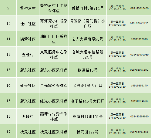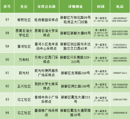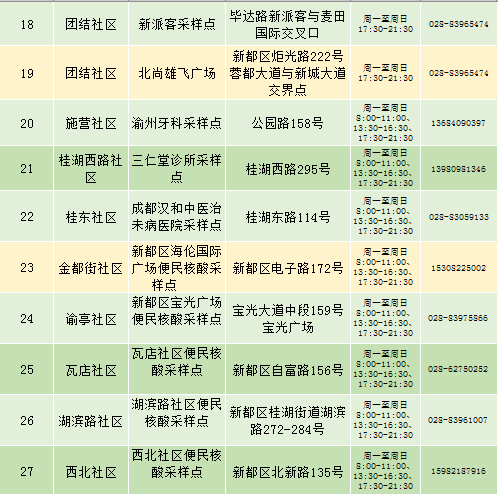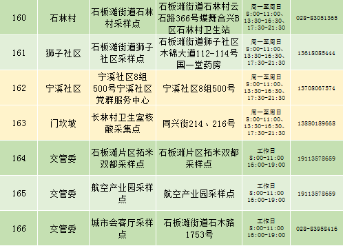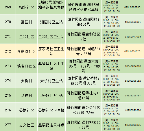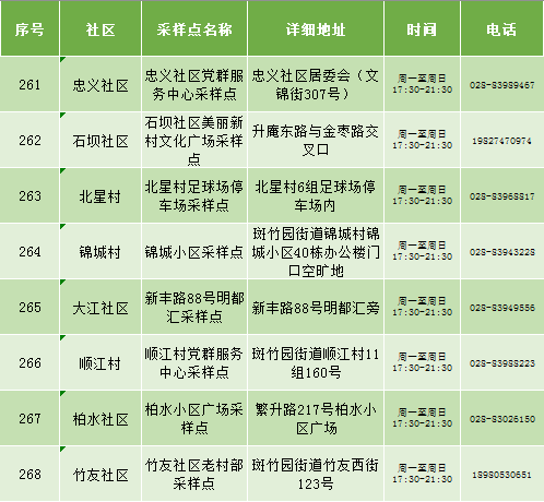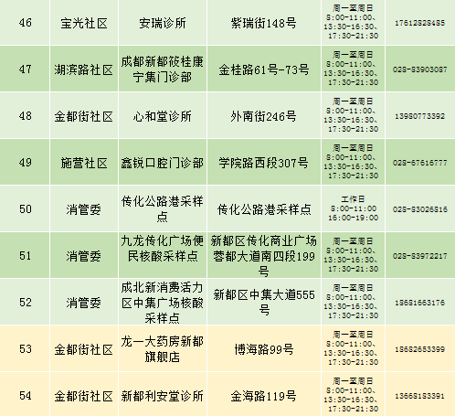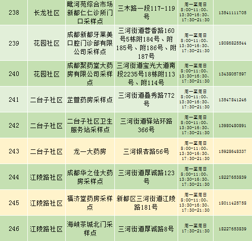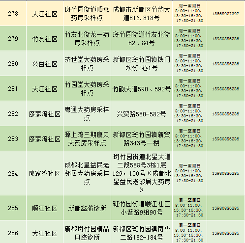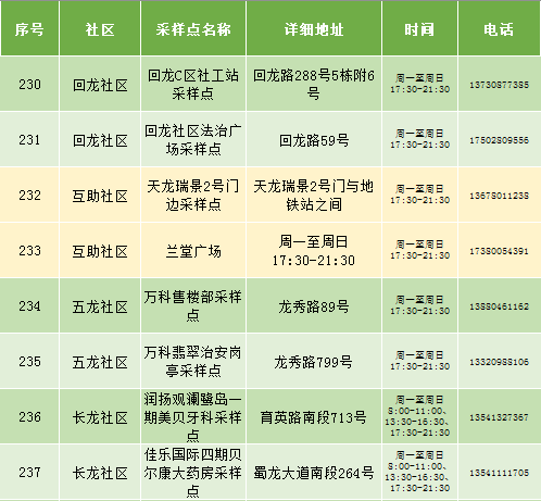 调整后,全区共设9个黄码检测点、321个便民核酸采样点(含9个24小时便民采样点、18个08:00-24:00便民核酸采样点、294个社区便民核酸采样点),为市民提供免费混检服务。