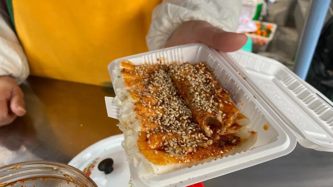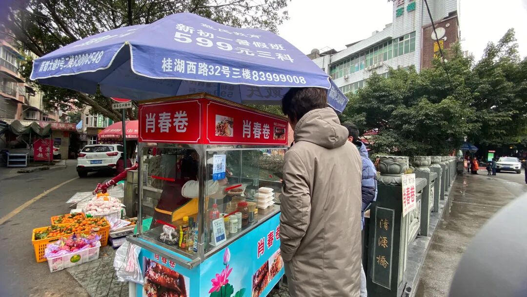 南门桥上人来人往,大多数人都会驻足买一份春卷,也有人慕名前来品尝,不一会儿铺面前就变得熙熙攘攘。