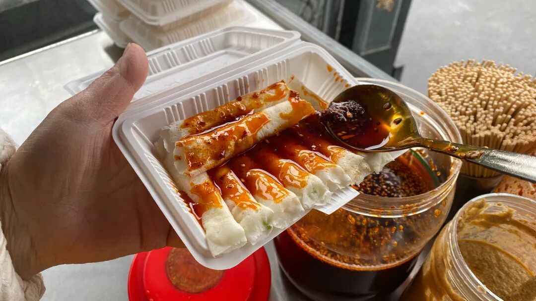老板就会淋上自家熬制的辣椒油