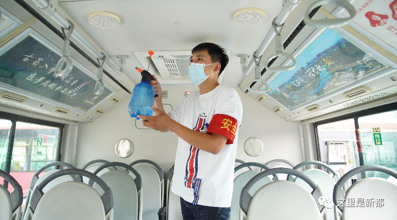 公交车司机为车辆进行消杀