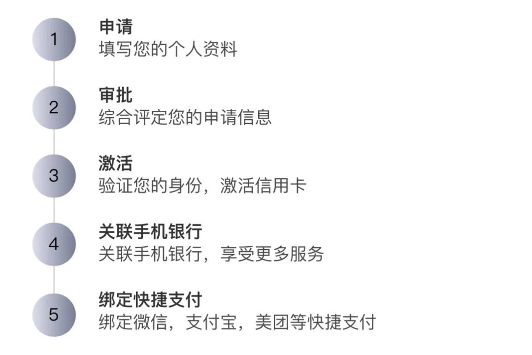 而且这张卡最大的亮点是“数字化”,从申请到使用,巨方便快捷,完全不会觉得累赘啊。实操下来,真只需要5步,即可申请激活使用。
