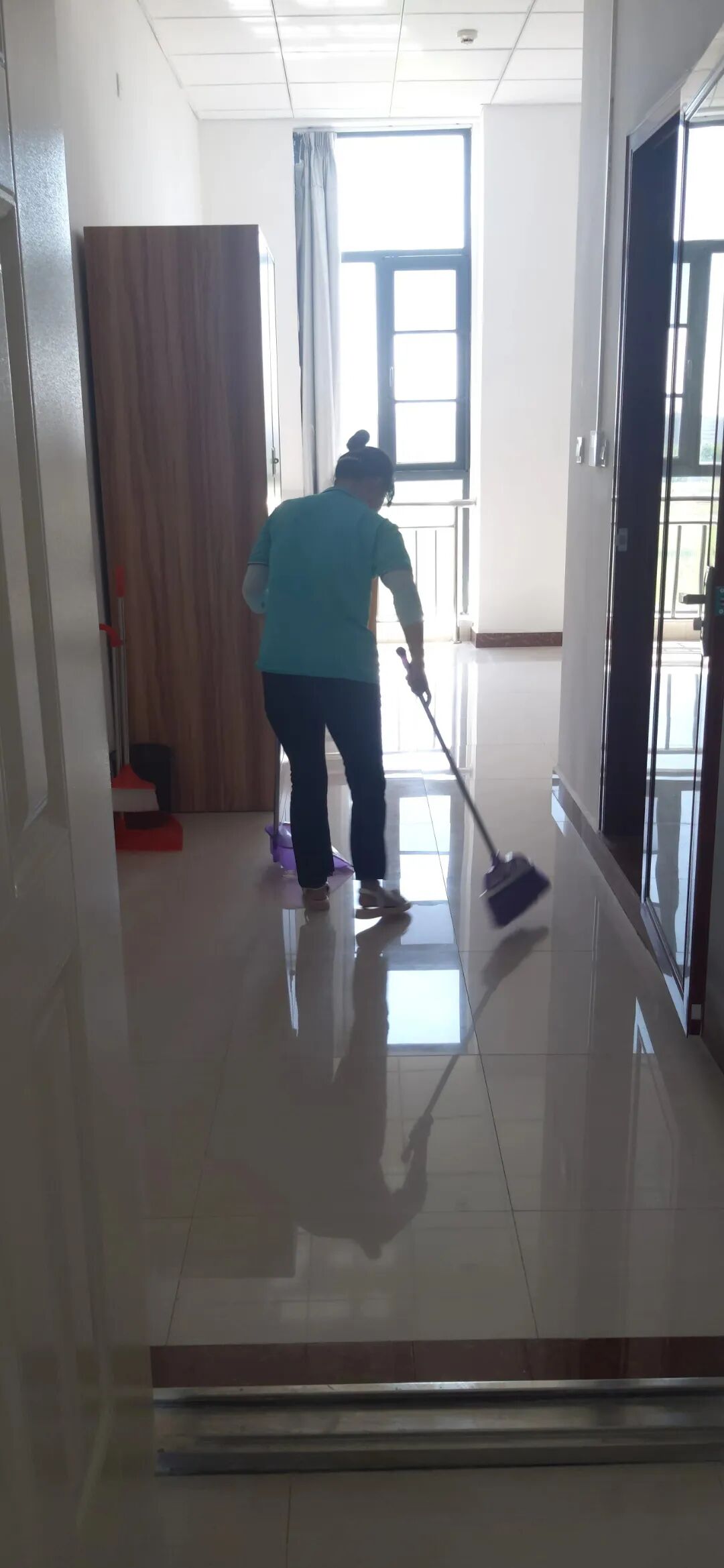 趁着好天气,宿管员把床上用品拿到楼顶上晾晒……
