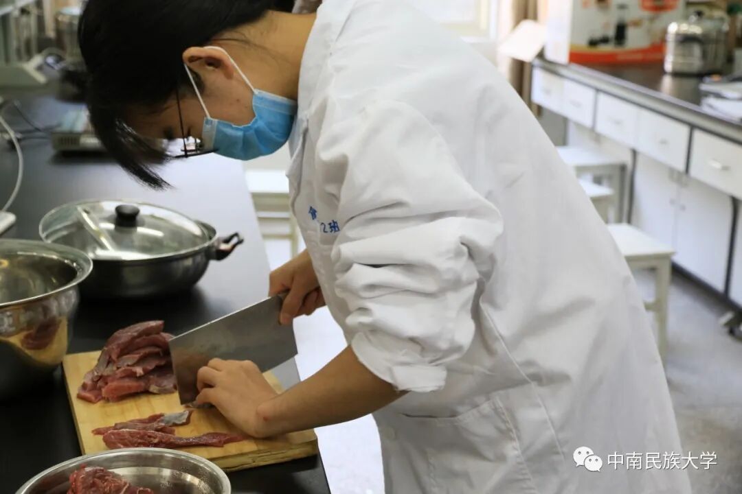 "同学们,切牛肉的时候厚薄均匀才好入味。卤料可以根据自己的口味进行调整。牛肉冷水下锅,去血水……”在学校食品工艺学实验课上,生命科学学院教师雷佳文给同学们反复强调制作牛肉罐头的注意事项。