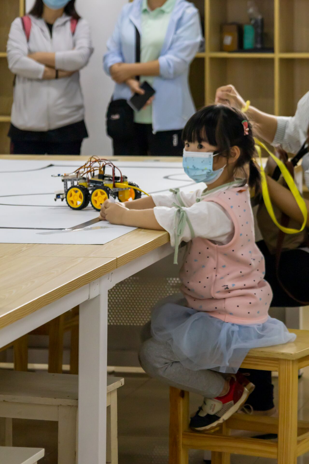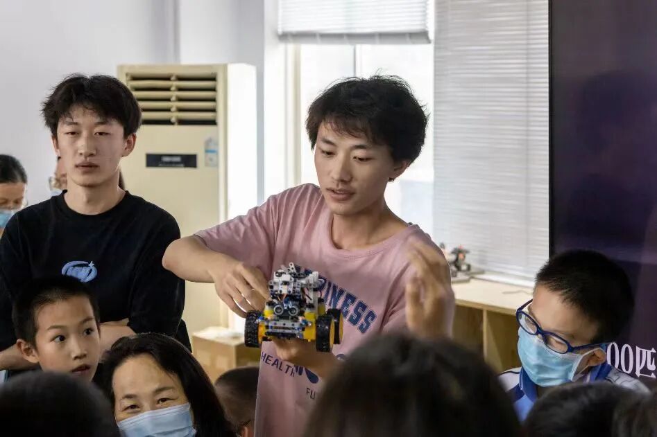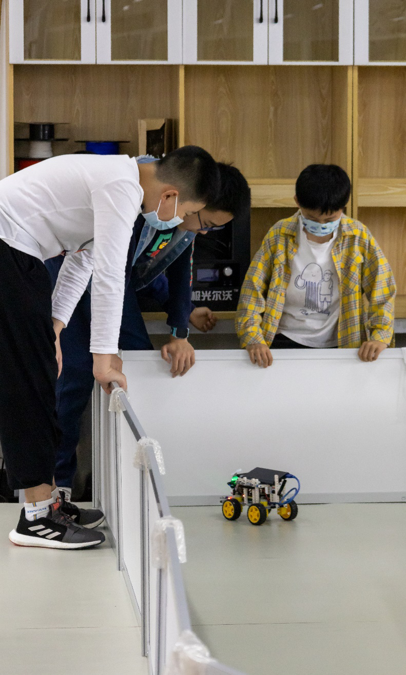 智趣团队成员向小朋友们介绍了小车以及传感器的工作原理