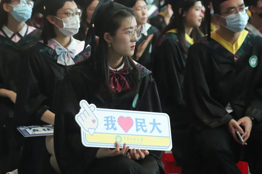 同学们!你们在人生最美好的年华、最关键的时刻选择了民大。在这里,你们探求真知,启智增慧;在这里,你们挥洒激情,淬炼青春;在这里,你们同心筑梦,茁壮成长。教学楼里,南湖园中,双子塔下,运动场上,处处留下了你们潜心向学、追求真知的身影,处处印刻着你们挥洒汗水、拼搏奋进的足迹,我们一起见证了你们成长的点点滴滴。