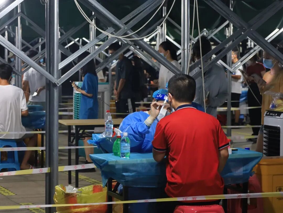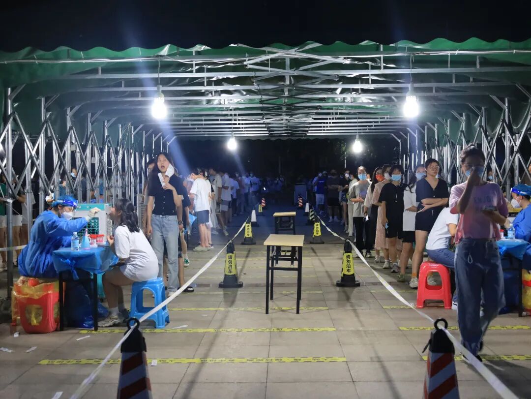 “今天采了九百份!” “哇,效率真高!”“没办法,这么多同学总要做快一点!”临近晚上八点,北区的核酸采样工作接近尾声,校医院护理部徐佳妮医生和同事边收拾现场边讨论道。