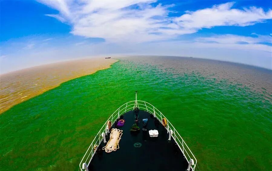 ▲在山东省东营市黄河入海口,黄河与渤海交汇处呈现色彩分明的景观。新华社记者 朱峥摄
