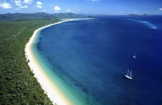 石梅湾白沙碧海,蓝天流云,自成画卷,更有青梅翠带,溪流湖泊,秀屿奇石,细浪柔沙,美不胜收。港湾平时风平浪静,滨海沙滩长约7公里,近百米内水深不过3米。由两个形如新月的海湾组成,长达六公里的碧海银滩,为植被茂密的低缓山坡所环抱,被世界旅游组织专家赞誉为海南现存未开发的最美丽海湾。区内自然资源丰富多彩,碧海、青山、白沙、奇石、岛屿、椰林、溪流于一体,山清水秀,景色怡人,充满原始的热带原生态自然风光,这里曾经是《非诚勿扰2》拍摄地。
