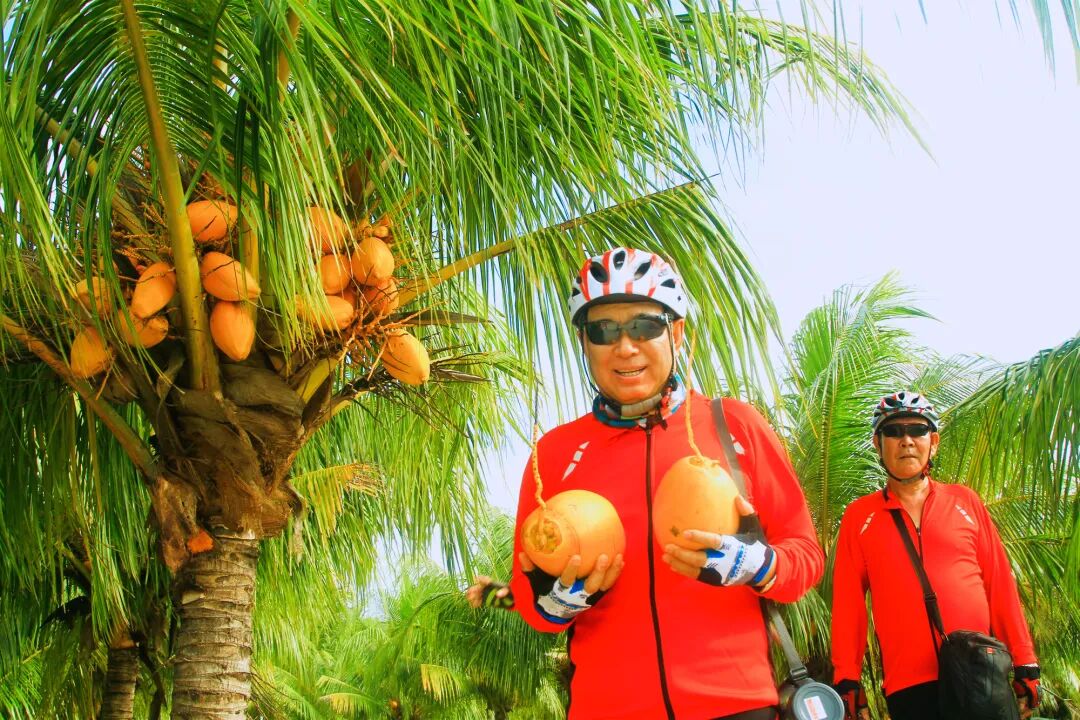 这里有60万棵椰子树,椰树成片,椰姿百态,信步于弯曲的椰林小道,能觉凉风习习,林涛沙沙,处处阴凉舒适,悠然自得坐于屋檐下品茗赏海,朝见蓝洋托霞,雾消峙现,鸥群南翔,渔舟出洋,夕观碧波耀金,彩云缀空,归鸥双飞,归渔划浪,夜赏巨壁铺银,渔火聚散,星缀蓝空,北斗蠕行,雨时则见万顷迷膨,水平浪静,雨打椰叶,碎五落盘,我们骑车穿梭其中,恍如世外桃源,还可以自己动手摘椰子,大快朵颐。