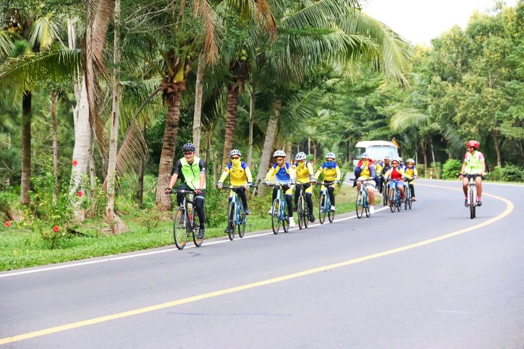 下午:午餐以后,继续骑行椰林小道,骑行至终点,领队进行收车,驱车前往博鳌小镇(车程90min),前往博鳌海的故事进行游玩,然后前往酒店办理入住,晚餐大家可以自由选择,博鳌镇有很多餐厅,或者前往镇上的巧娘甜品店,椰子的味道吃海南本土甜品清补凉,鸡屎藤等,晚上还可以继续去海的故事,因为海的故事白天和晚上的风情完全不一样。