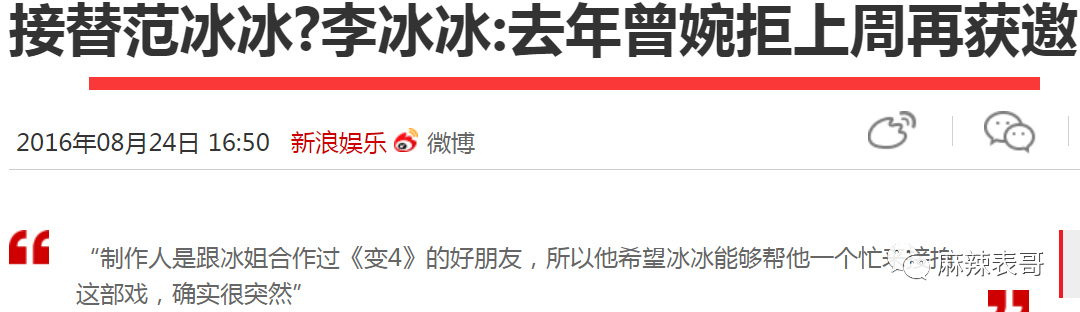 (不知道为什么李冰冰删了,看评论好像是说了比较二的话)