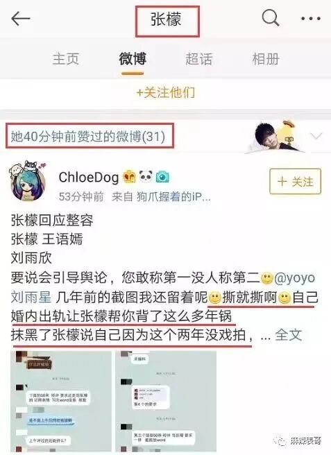 刘雨欣暗示张檬一直在给她使绊子,张檬点赞“刘雨欣婚内出轨抹黑张檬”。