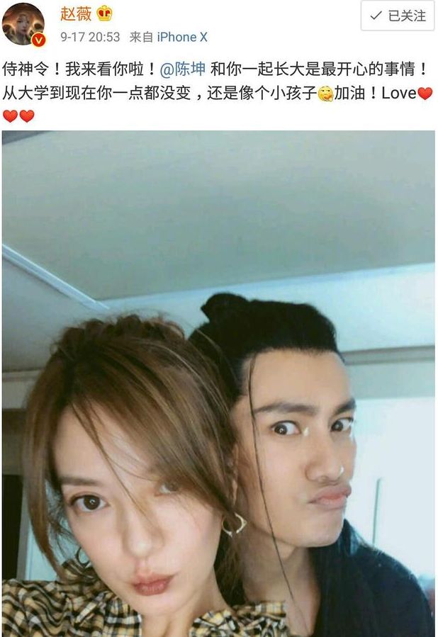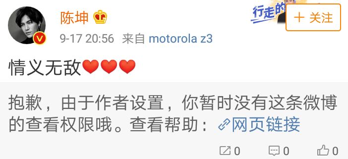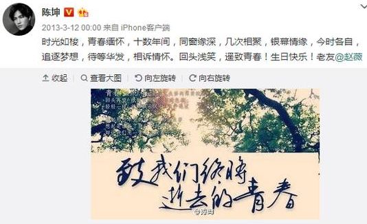 被大众质疑两人感情破裂后,陈坤在小燕子生日那天,终于发了一条支持的微博。