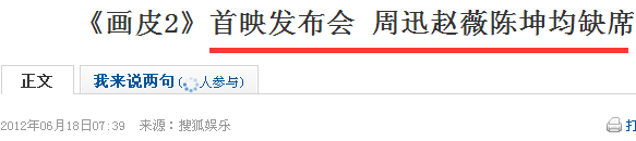 一会传出“踢凳子风波”,一会说陈坤周迅推荐了小燕子,结果新闻出来说小燕子的角色早就定了,还有片酬事件,最后首映发布会三个主演都没到场。
