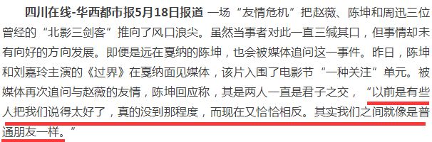 当时陈坤的工作人员澄清二人并未闹掰,表示好友的关心有很多种形式,不一定要公开吆喝才算是支持。