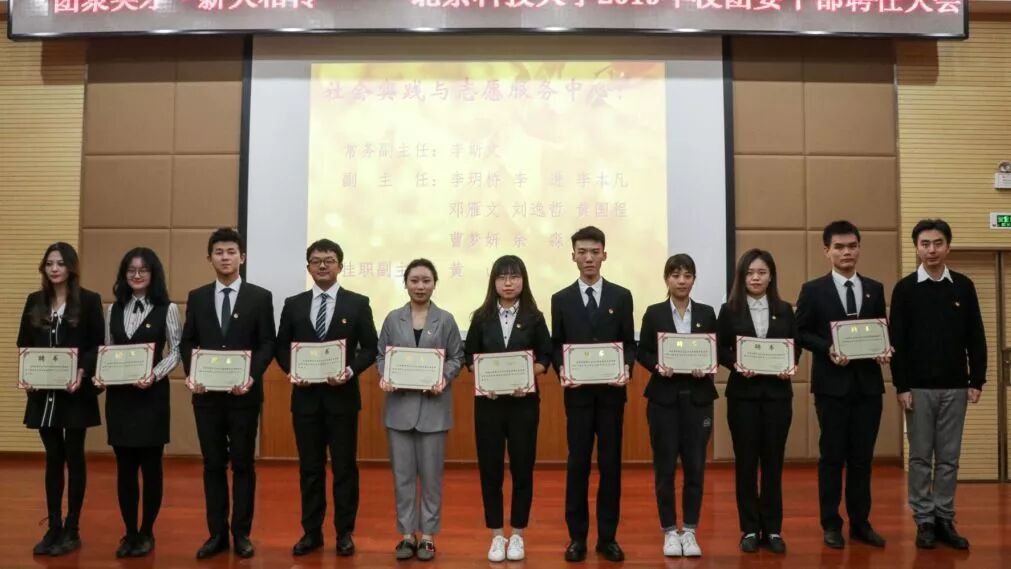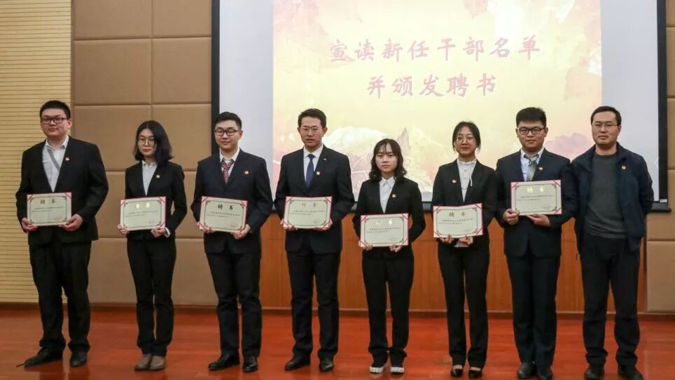 随后校团委老师们依次宣读了校团委各个部门的新任学生干部名单并为他们颁发聘书,希望他们能继续努力,为北科大共青团谱写新的华章!