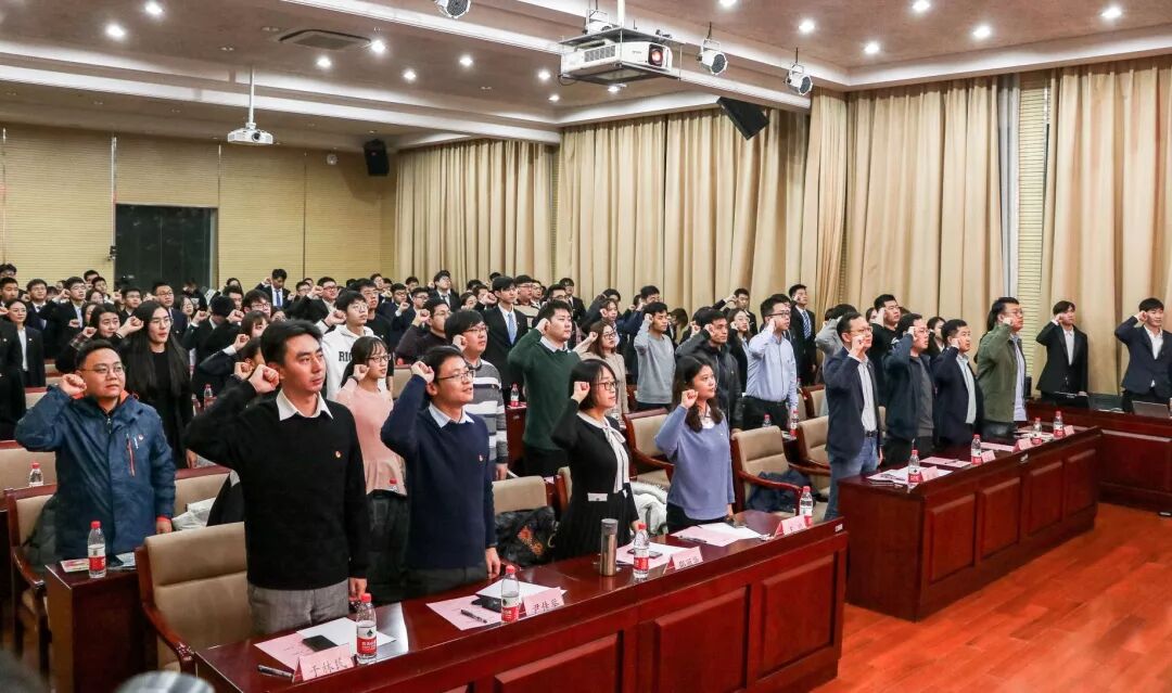 接下来校团委书记苏栋老师宣读了青年成才导师的聘任名单并为导师们颁发了聘书,希望各位团干部在成才导师的指导下茁壮成长,在人生的大舞台上发光发亮!随后,在团旗的见证下,团干部们庄严宣誓,牢记使命、传承精神,并在新的一年中勤奋学习,积极工作,勇于实践,敢于创新,为学校共青团发展和学生成长成才而努力奋斗。