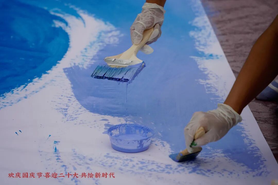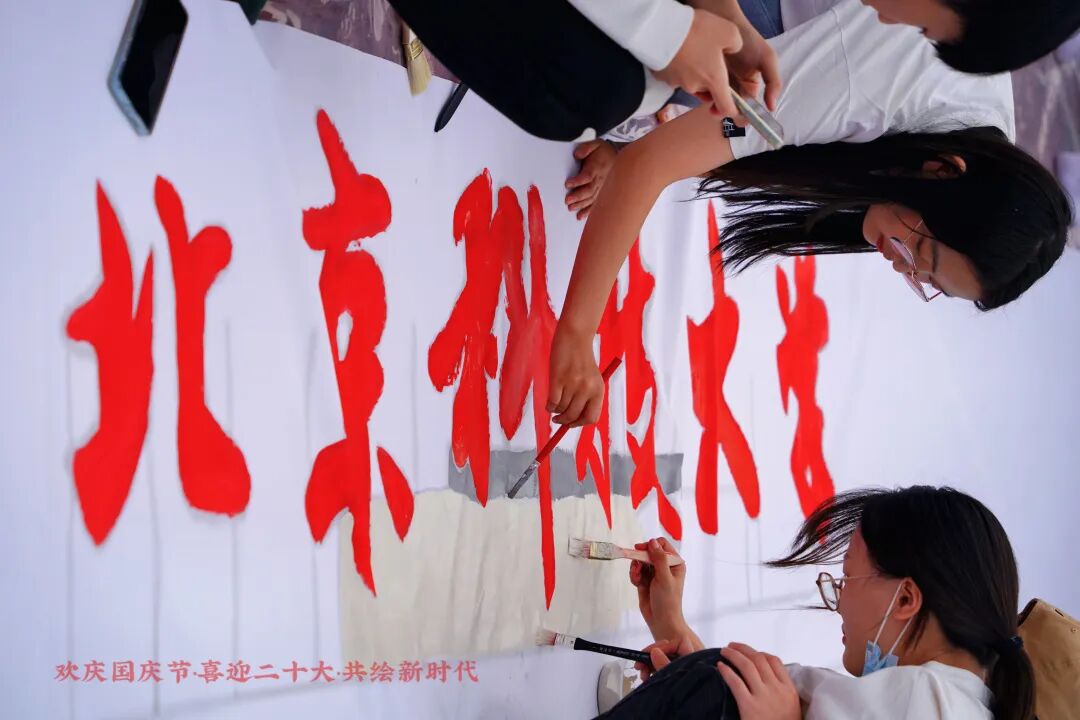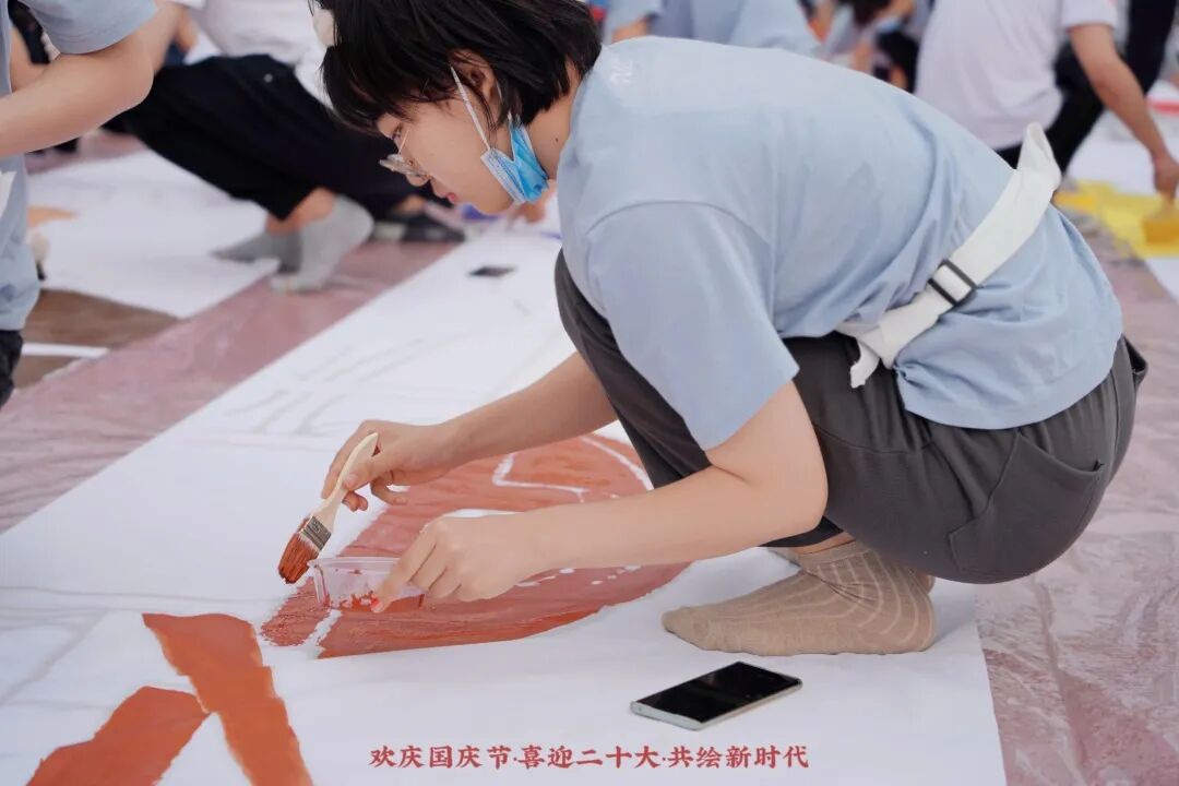● 很荣幸能够参与本次“欢庆国庆节·喜迎二十大·共绘新时代” 彩绘活动,北京科技大学的同学们分工合作共同完成了一幅巨型彩绘,用画笔传达了对祖国的热爱。这是同学们欢度国庆的一种方式,更是大家对祖国母亲的最好生日礼物。