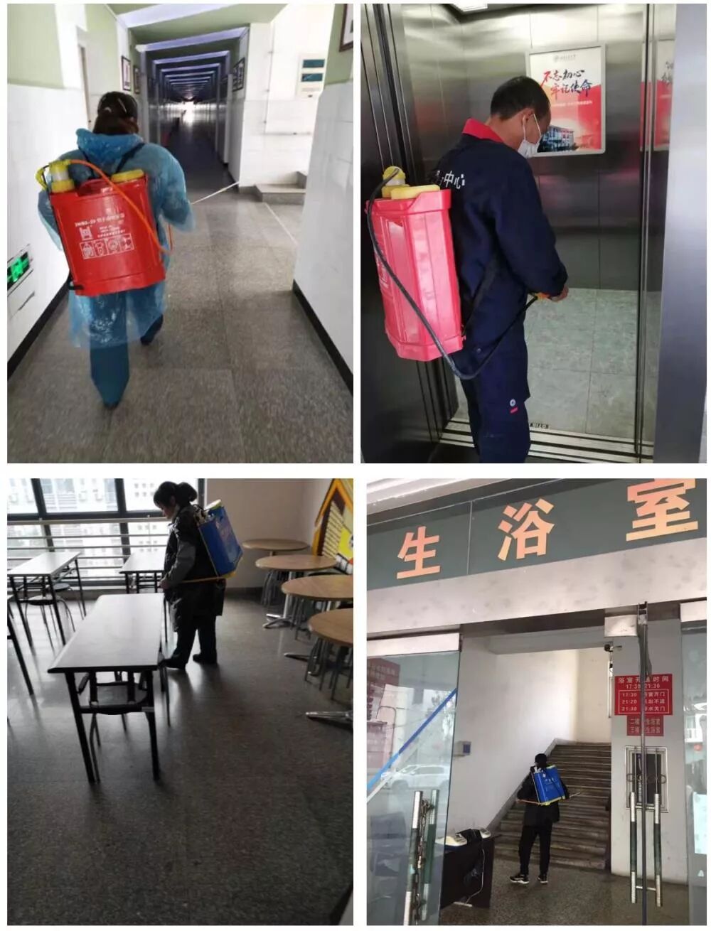 后基处各中心积极联动,多措并举,落实防控责任,做好公共卫生、各项物资采购、加强校医院建设、防控重要物资筹备、开学预案等工作。在成峨三校区对教室、实验室、图书馆、学生宿舍、厕所、食堂、交通车、建筑工地等人群聚集场所的通风换气,对校园公共设施及公共用具每天定时进行消毒,为广大师生创造卫生、整洁、健康的校园环境。