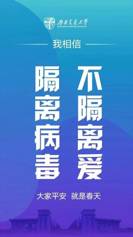 防控工作责任重于泰山。西南交通大学全体师生员工将坚决贯彻落实习近平总书记重要指示精神和党中央决策部署,坚定信心、守望相助、科学防治、精准施策,打赢这场疫情防控阻击战!