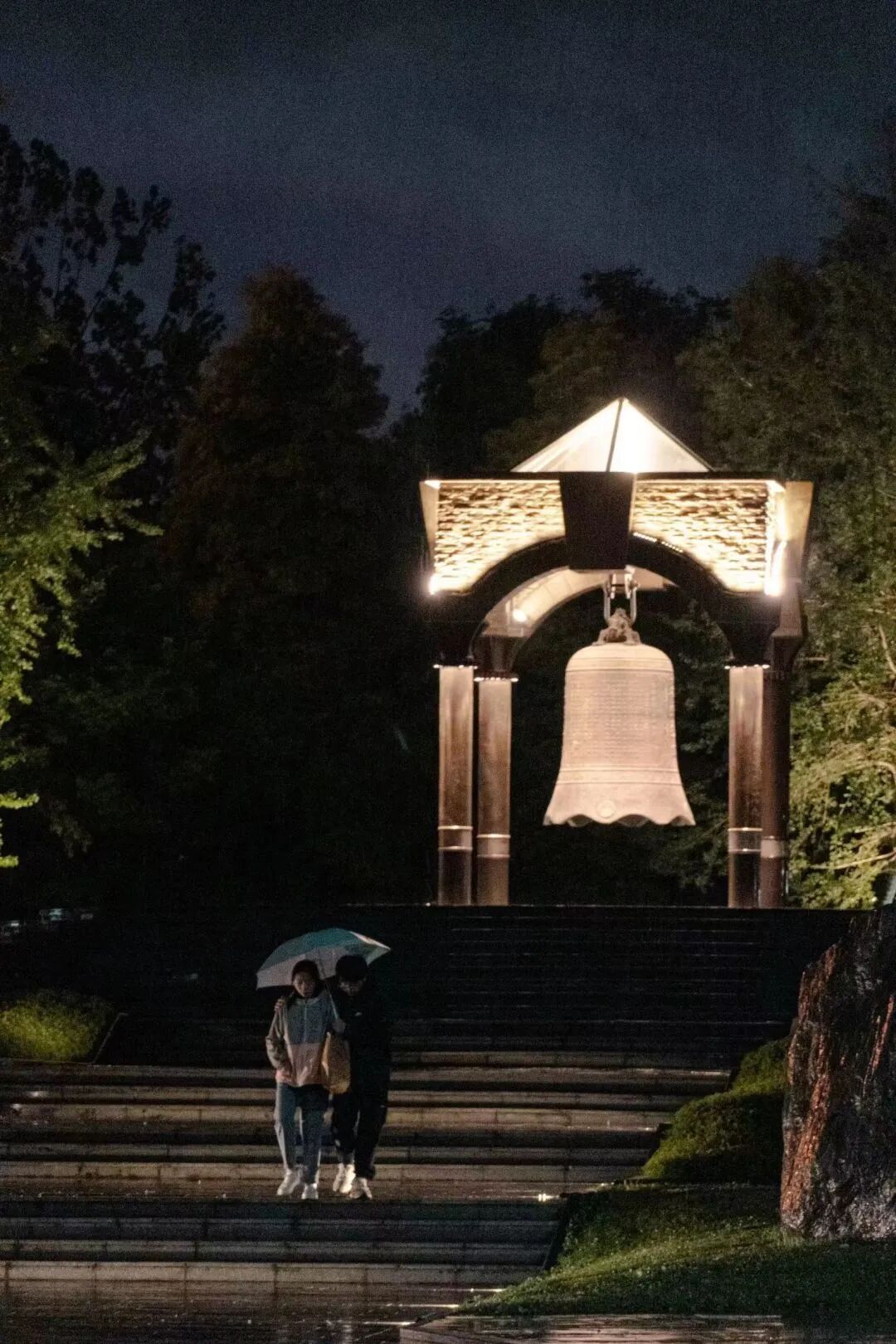 镶嵌钟亭的铜铸雕刻