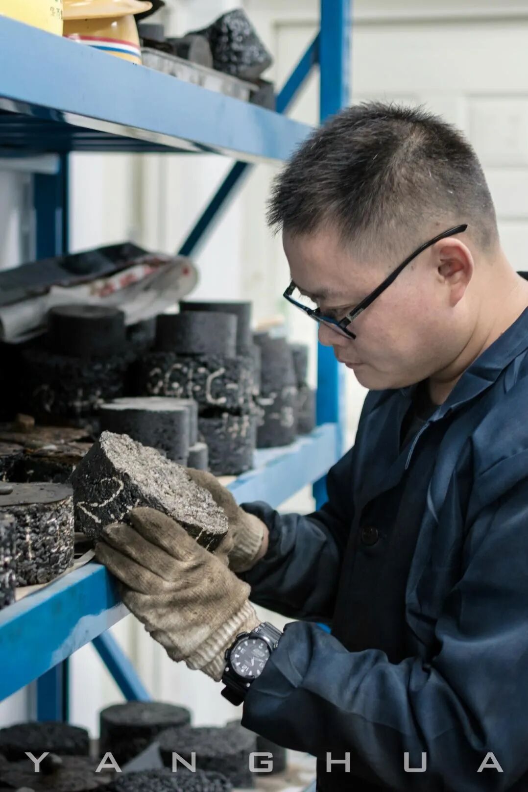 高温下工作,一不小心就会烫伤,受伤就会耽误实验进程,满手伤痕的黄恒伟不想再因自己的失误而浪费时间,他盯着灯光下液化的沥青,就像小时候盯着火把下的泥坑一样,慢慢地将掺杂物按照改进后的比例倒入液化的沥青中。掺杂物与黄恒伟脸上的汗水一同,一点一点,一滴一滴,掉落到了属于它们该去的地方。
