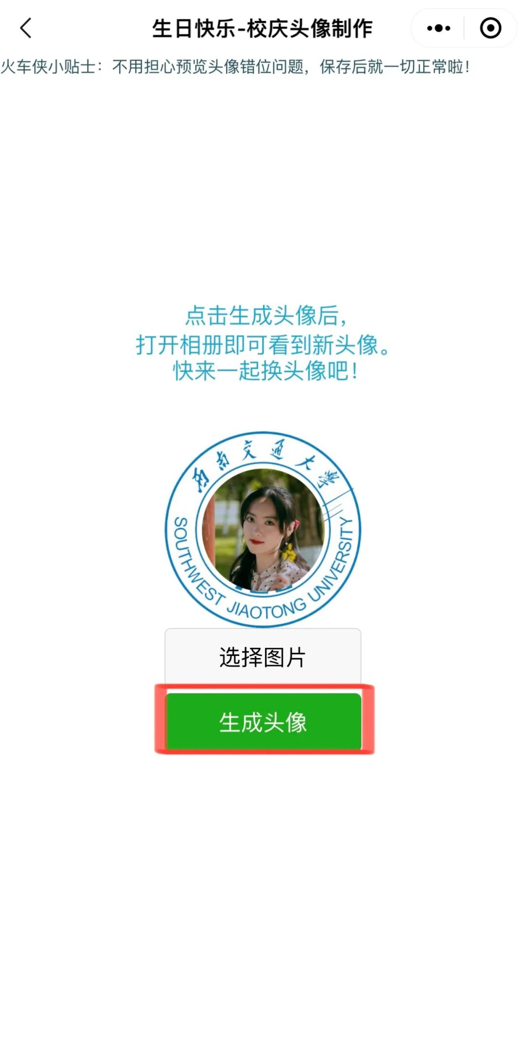 交大126周年限定头像已经保存到相册