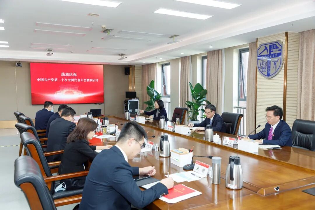 西南交通大学师生热切期盼着党的二十大召开,在做好疫情防控的前提下,学校党委周密部署,组织全校师生党员在九里、犀浦、峨眉三个校区集体收看党的二十大开幕会现场直播。全体在校的校领导班子成员在综合楼603会议室收看开幕会直播。二级单位共设立133个分会场,各单位党政班子成员、全体师生党员、思政课教师、辅导员、民主党派和统战团体负责人、社团骨干等通过电视、网络认真收听收看了开幕会实况。师生们认真聆听,不时热烈鼓掌。