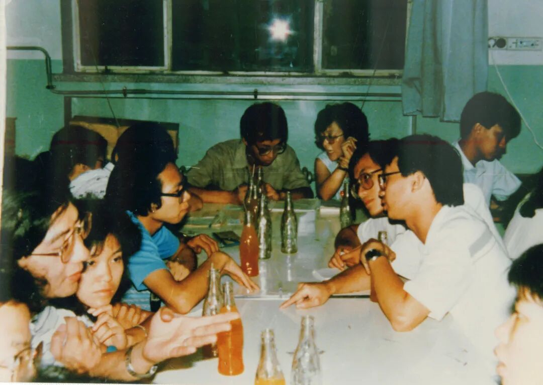 1987年,人大法律系新年联欢会。前排左起:杨大文 刘素萍 佟柔 郑立 赵中孚;后排左起二:王利明 左三:刘春田 左五:龙翼飞