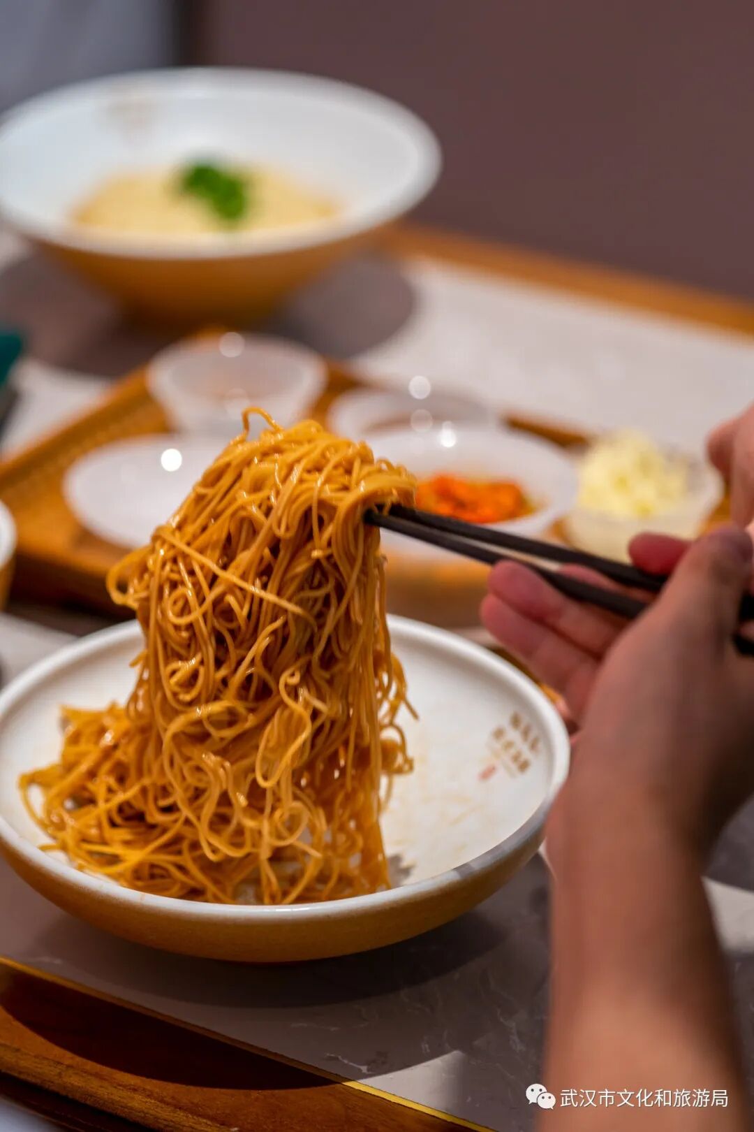 汉版香辣蟹,热干面也不能少。螃蟹下铺着一层热干面打底,酱汁为面注入灵魂,因为新鲜,所以吃起来比起普通的蟹脚面腥味更少。
