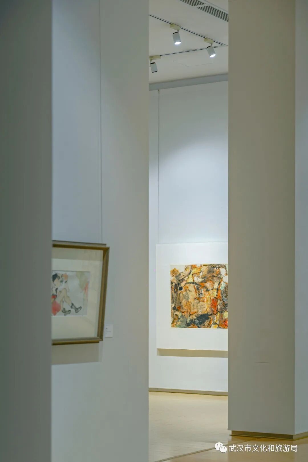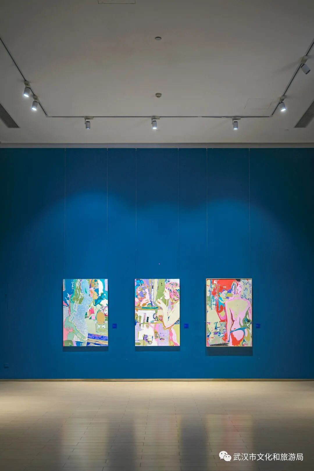 目前1、2号展厅正在展出《@武汉·2020万象——钟孺乾 曹丹 叶军三个展》。跟以往传统国画、油画风格不同,三位艺术家的画作都极具个性。