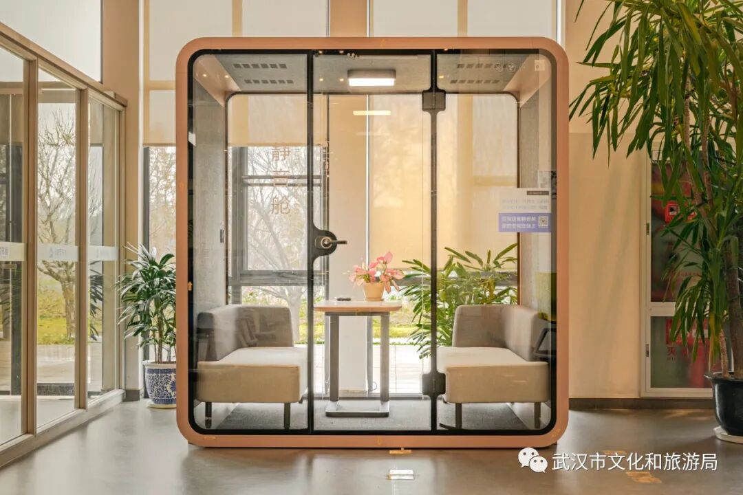 自助图书杀菌机、静音舱、朗读亭这些人性化设施在这里也能看见,读者可以进入朗读亭内朗读喜爱的文章,在静音舱里大声背诵而干扰不到他人。