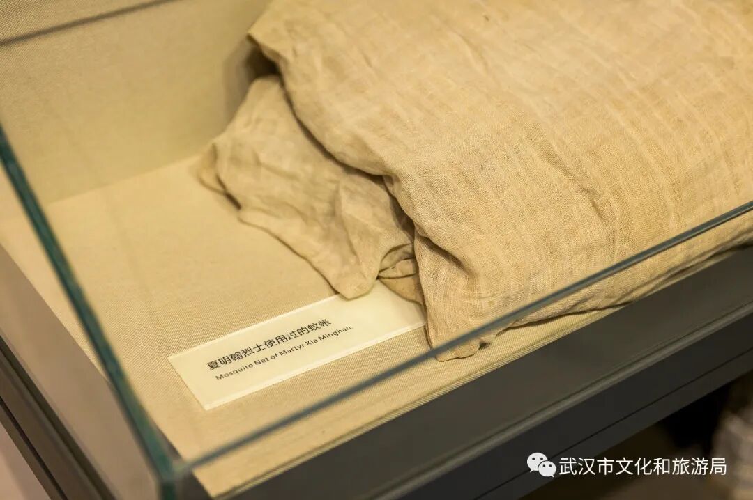 武昌农民运动讲习所旧址纪念馆,有一面泛黄的蚊帐,是夏明翰烈士收到的的新婚礼物,也是他仅有的一件遗物。