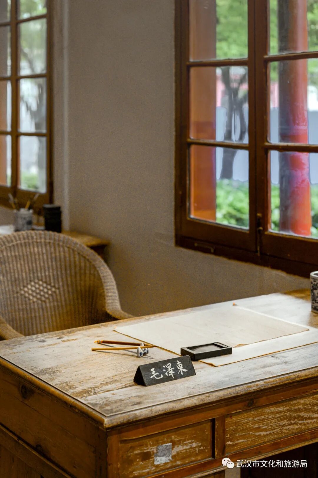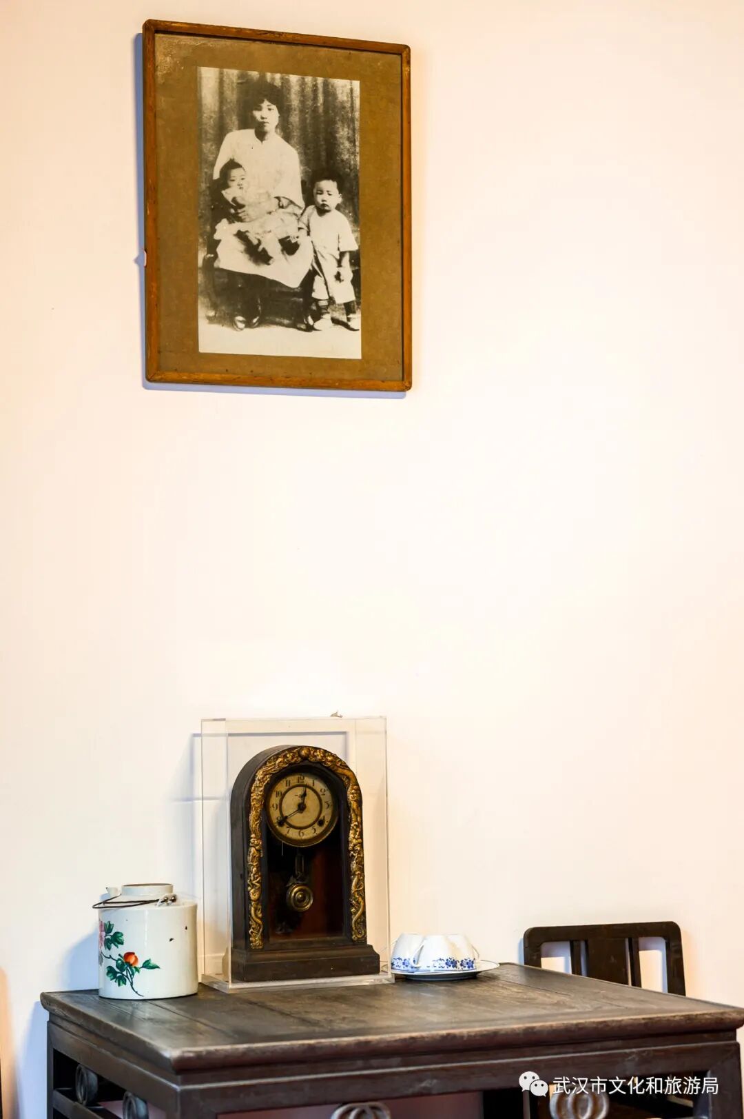 在毛泽东旧居纪念馆,一只黑漆底、红木云龙浮雕饰边的老座钟,见证了革命一家人在武昌的团聚生活。
