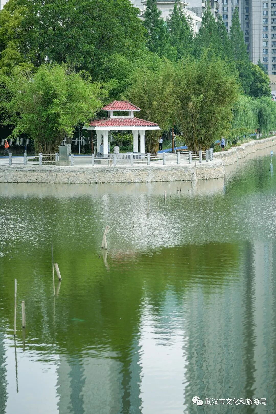 上周一,汉口菱角湖,闭园7个月的「菱角湖公园」终于拆除围挡,重新开放啦!