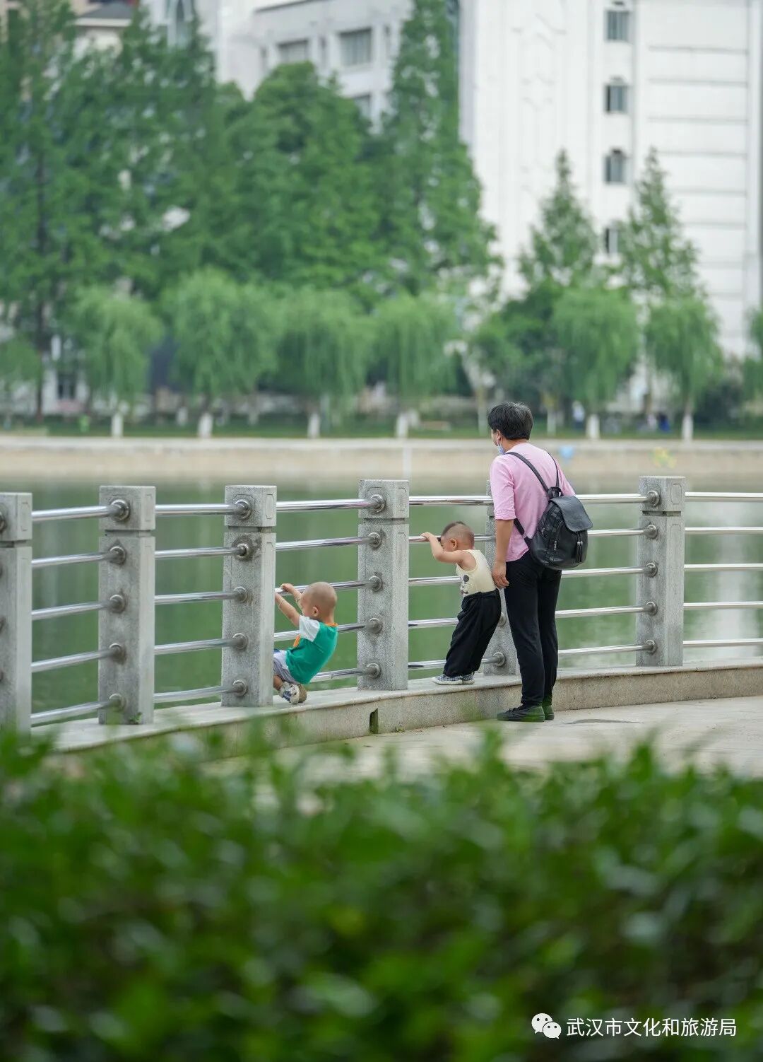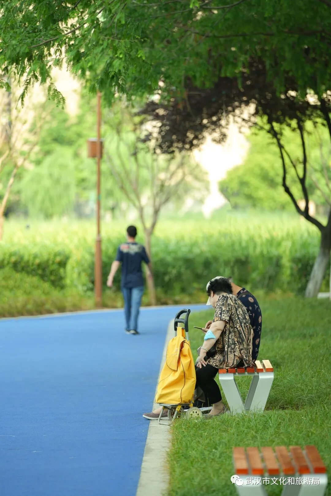 它融入街景——公园临近唐家墩路的2号、3号门拆除了围墙,街景和公园融为一体。从写字楼下班,随时走入公园,美美地追一场湖边落日。