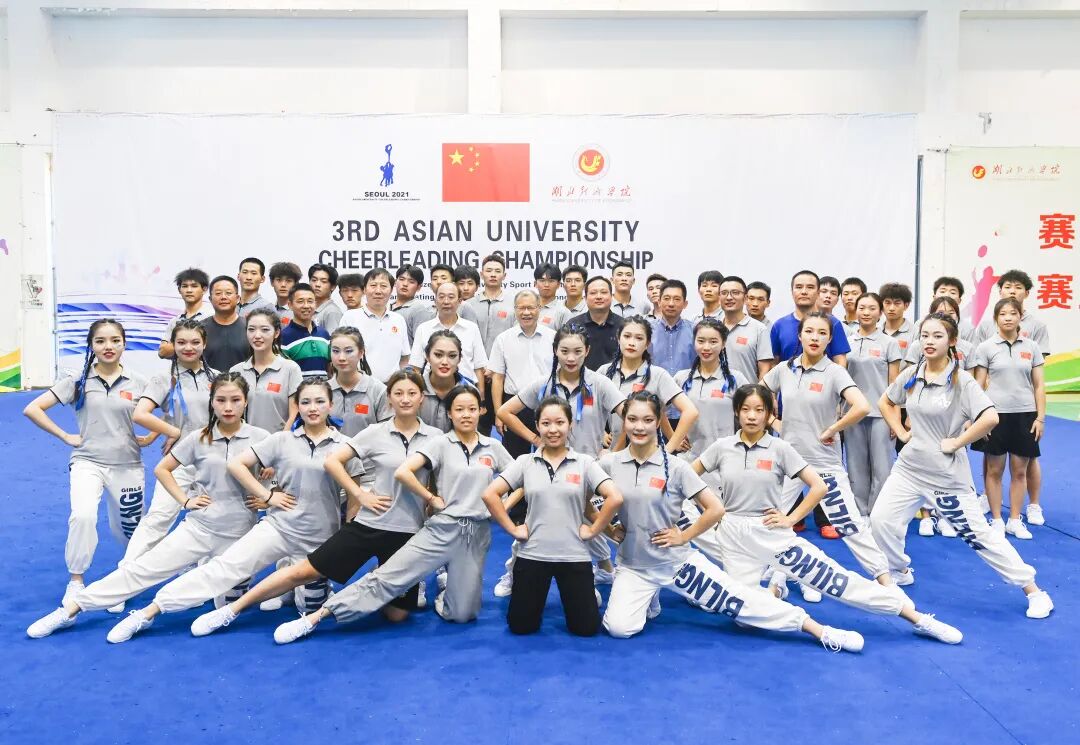 中国大学生体育协会组织专家团队根据各院校在国际、国内赛事所获成绩积分排名,经过认真筛选,最终委派我校、华东师范大学、北京体育大学等九所高校组队代表中国与亚洲5个国家438名运动员同台竞技。作为唯一的非专业院校,我校Amazing啦啦队收到委派任务后迅速集结,克服疫情困难,凝心聚力,刻苦训练,团结奋战。