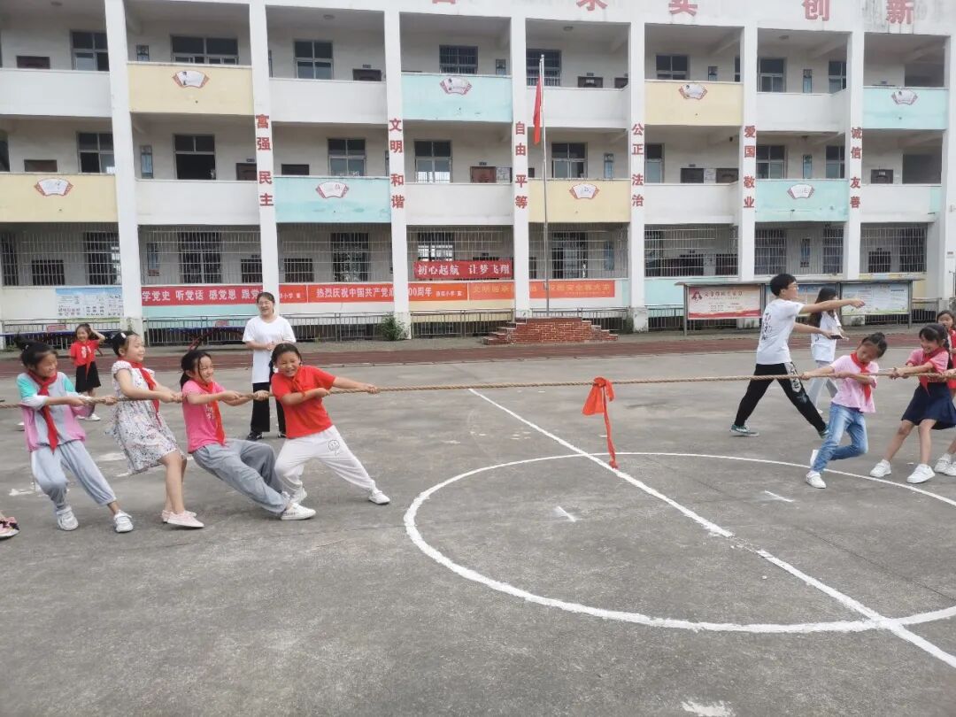 在拔河比赛中,孩子们的力量悬殊较大,比赛很快就分出胜负。输的那一队情绪低落,胡荣华对他们说:“输赢并不重要,参与了就很棒。”