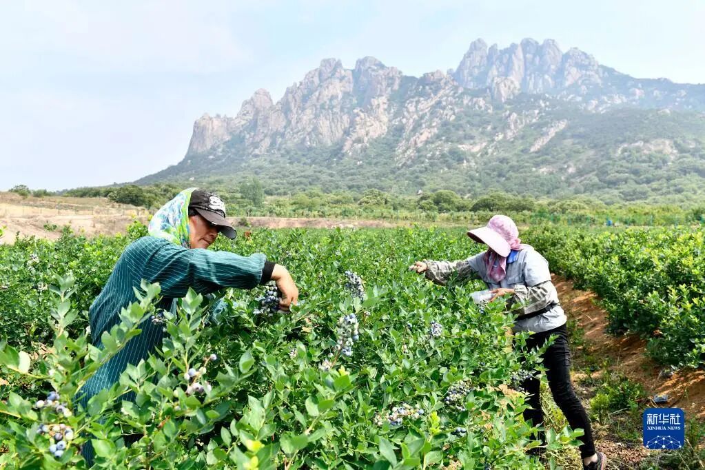 村民在山东省五莲县九五农业现代林果科技产业园采摘蓝莓(2022年6月18日摄)。新华社记者 郭绪雷 摄