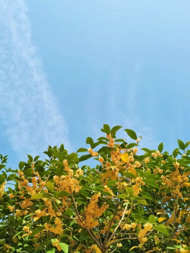 娇羞的桂花躲在蓝天白云下