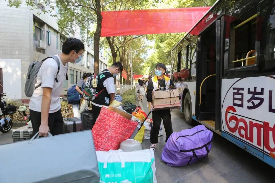 引领新生前往校园