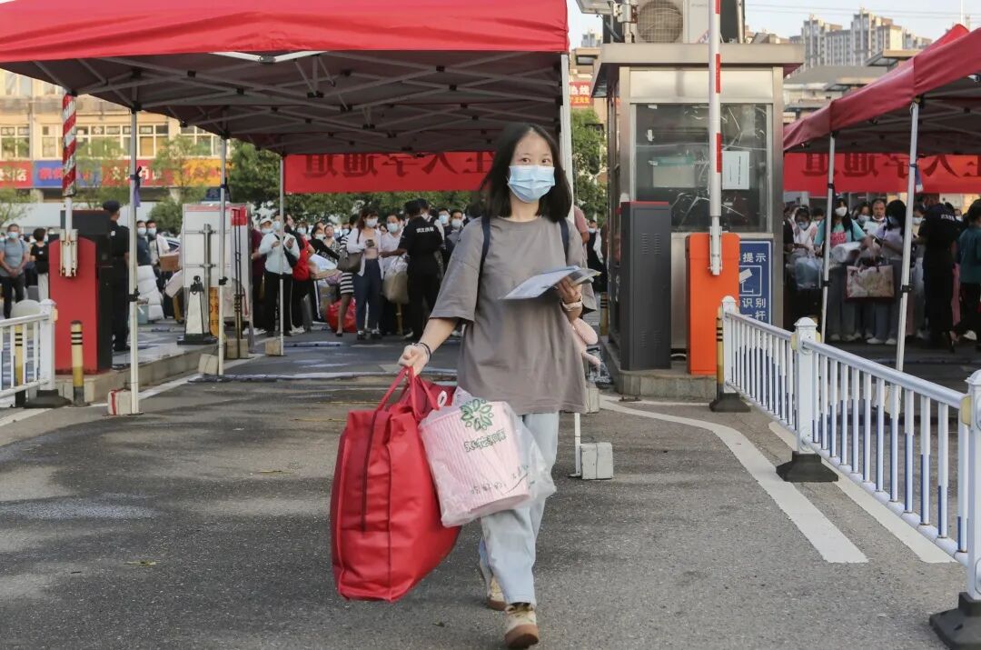 家长只能目送新生进入校园