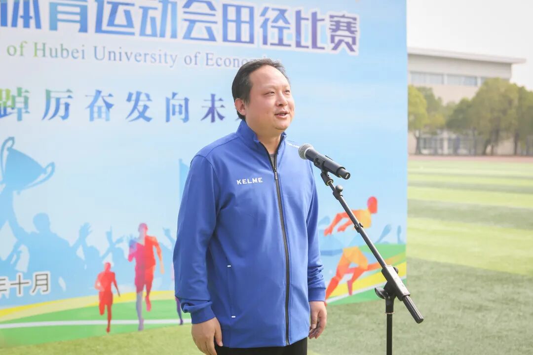 校体育运动委员会主任、副校长付宏宣布第十九届体育运动会田径比赛闭幕。