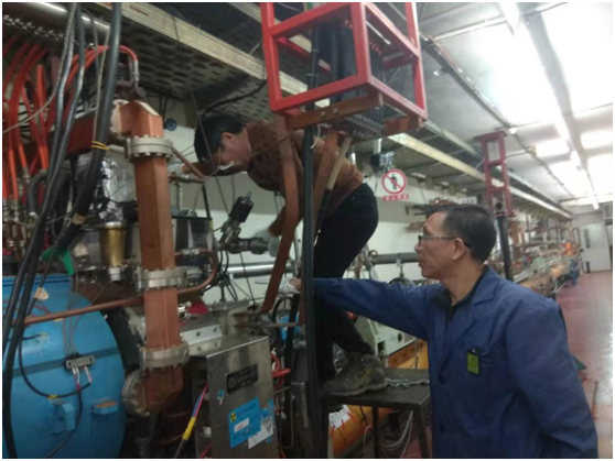 此时,束流测量系统安装负载和温度探头。BEPCII正电子源系统负责人陈光辉也在通用运行、工厂积极协助下,解决了正电子源靶心漏水的问题。