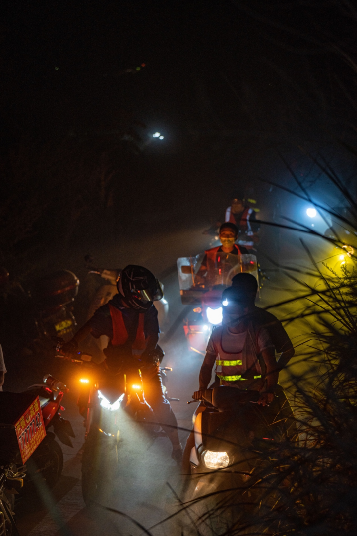 从21日开始,这些摩托车骑手们,在山火现场接力运输,让本来没有灯的地方,有了灯;让本来没有路的地方,有了路。